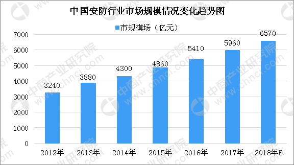 中商情報(bào)網訊: 近(jìn)年(nián)來(lái),國(guó)內(nèi)安防行(xíng)業(yè)市(shì)場(chǎng)規模保持穩定增長(cháng),其市(shì)場(ch£ǎng)前景可(kě)期。據中商産業(yè)研究院發布的(de)《2018-2023年(nián)中國(guó)安防行(xíng)業(yè)市(shì)場(chǎng)前景及投資機(jī)會(huì)研究報(bào)告≤》數(shù)據統計(jì)顯示:我國(guó)安防行(xíng)業(yè)市(shì)場(chǎng)規模從(cóng)2012年(nián)的(de)3240億元增長(cháπng)到(dào)2017年(nián)的(de)5960億元,年(nián)均複合增長(cháng)率達到(dào)13%。據中商産業(yè)研究院數(shù)據預測,201↔8年(nián),我國(guó)安防行(xíng)業(yè)市(shì)場(chǎng)規模将達到(dào)6570億→元。