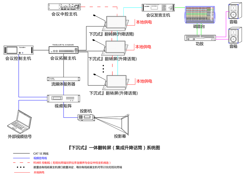 9、發言系統通(tōng)過手拉手連接,通(tōng)過專用(yòng)音(yīn)頻(pín)線連接至發言會(huì)議(yì)主機↑(jī)10、可(kě)接入VGA、DVI及HDMI模拟信号,三者之間(jiān)可(kě)手動切換,亦可(kě)RS485統一(yī)切換。